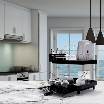 Escurridor de Platos Smart Plus Large Negro 1 Nivel - Drenaje 360°, Alta Capacidad y Diseño Moderno para Cocina