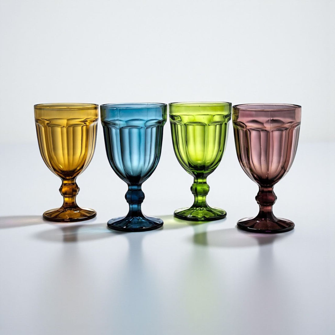 Set de 4 Copas Vintage Iceburg de Vidrio 574ml - Vidrio sólido y Colores Vintage para Brindar con Estilo