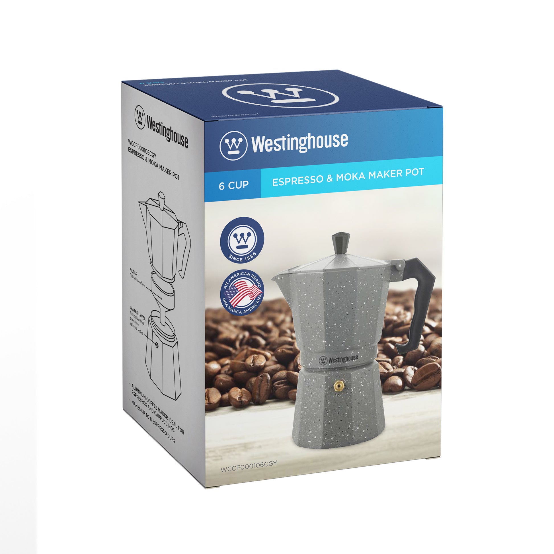 Empieza tus mañanas con un café como el de las cafeterías italianas, pero en casa. La cafetera espresso tipo Moka Westinghouse de 6 tazas te brinda ese sabor fuerte y profundo que tanto te gusta, con el encanto de lo tradicional y la eficiencia moderna.