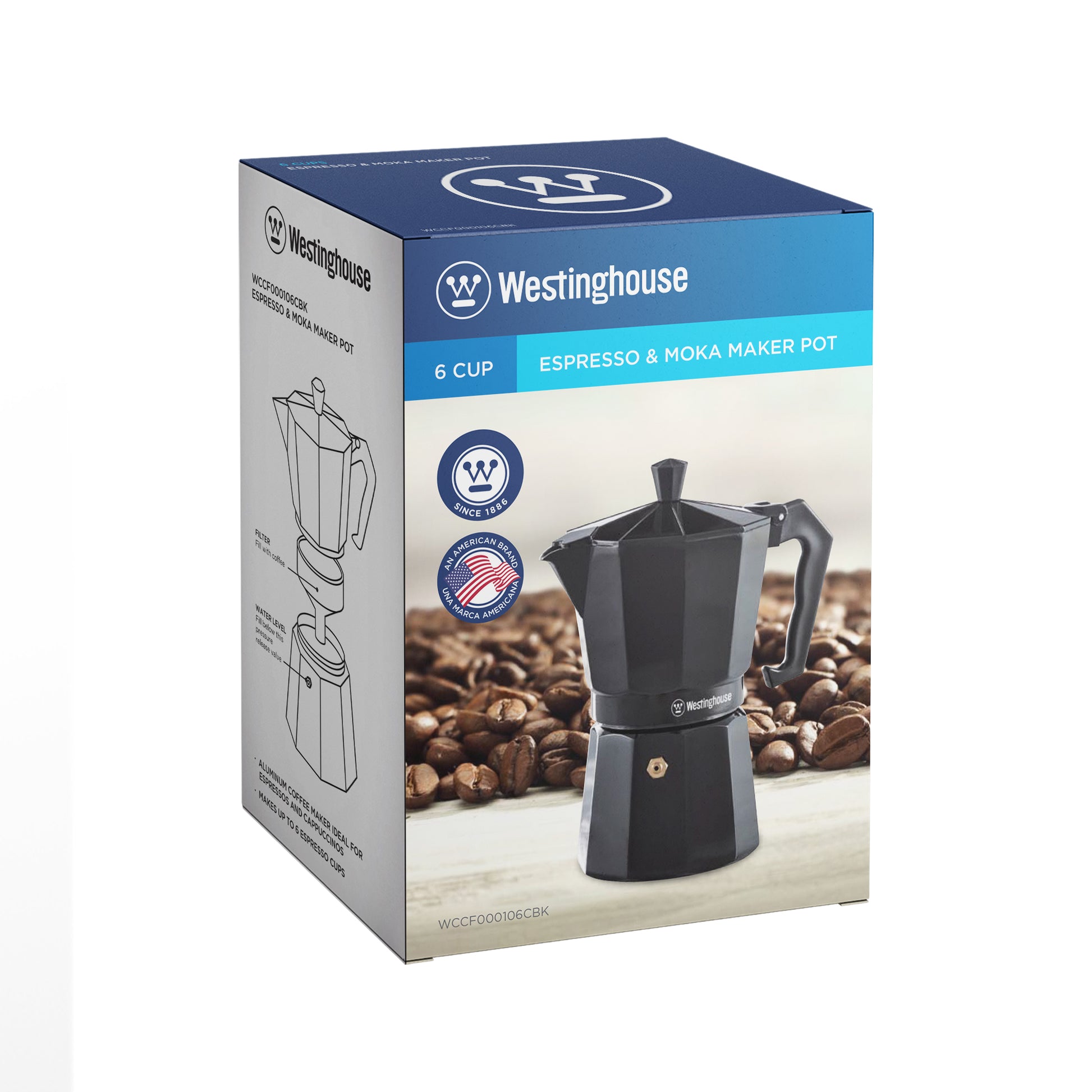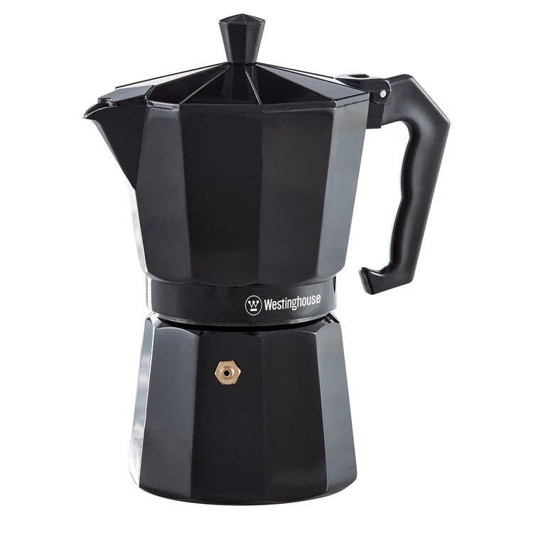 Empieza tus mañanas con un café como el de las cafeterías italianas, pero en casa. La cafetera espresso tipo Moka Westinghouse de 6 tazas te brinda ese sabor fuerte y profundo que tanto te gusta, con el encanto de lo tradicional y la eficiencia moderna.