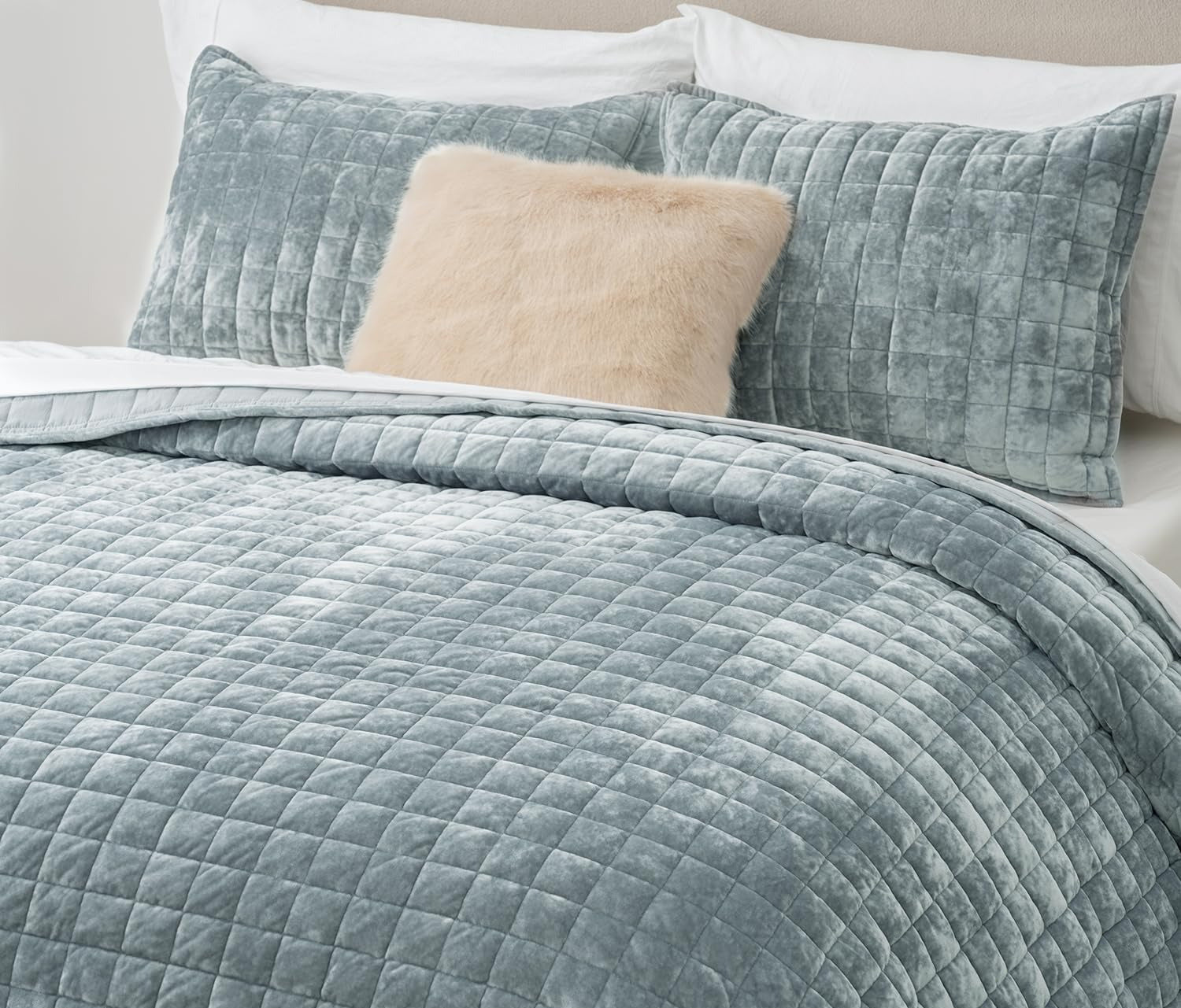 Tamaño Queen / 2 Plazas: 1 Cubrecama de 240 x 250 cm y 2 Fundas de almohada de 50 x 70 cm.