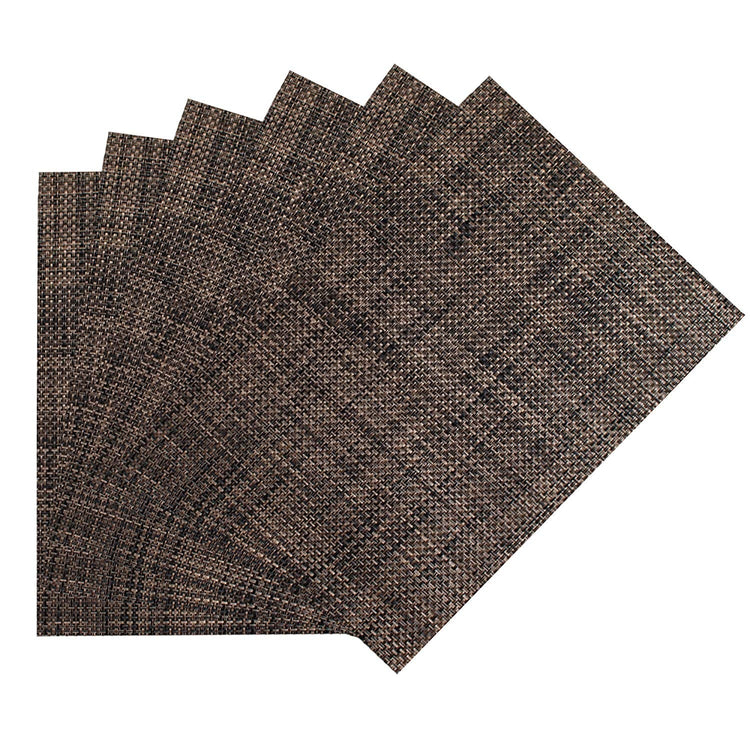 Set de 6 manteles individuales Benson Mills Longport, confeccionados en vinilo tejido de alta calidad. Resistentes, fáciles de limpiar y con diseño en color tabaco para elevar cualquier ocasión.