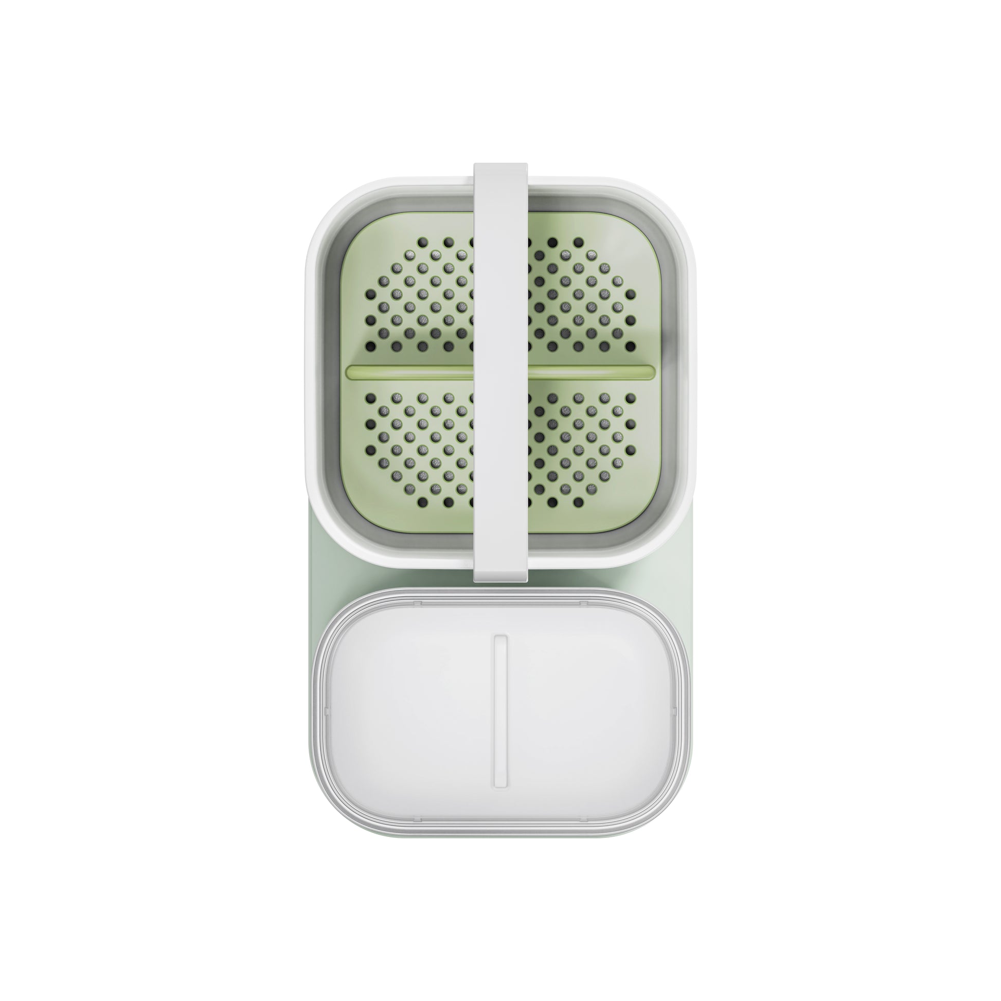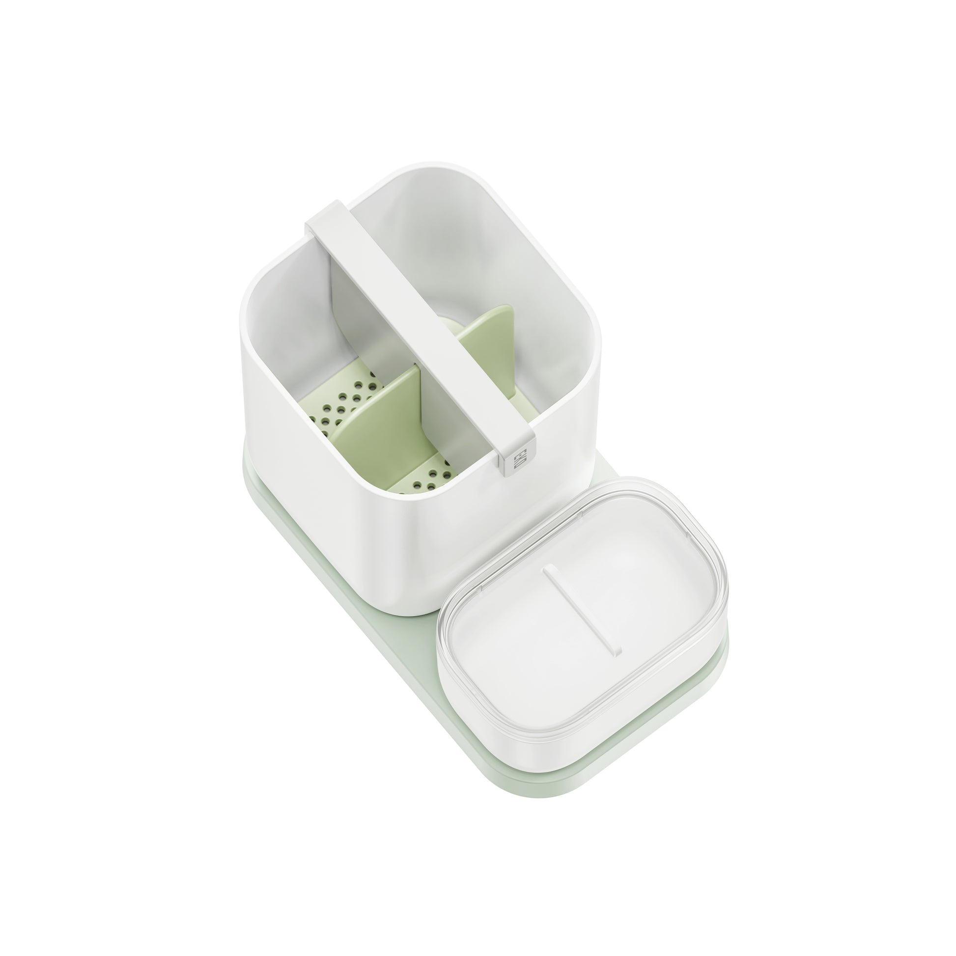 Permite organizar artículos de higiene personal de uso frecuente, manteniéndolos accesibles y separados. La base ventilada ayuda a drenar el exceso de agua tras el uso.