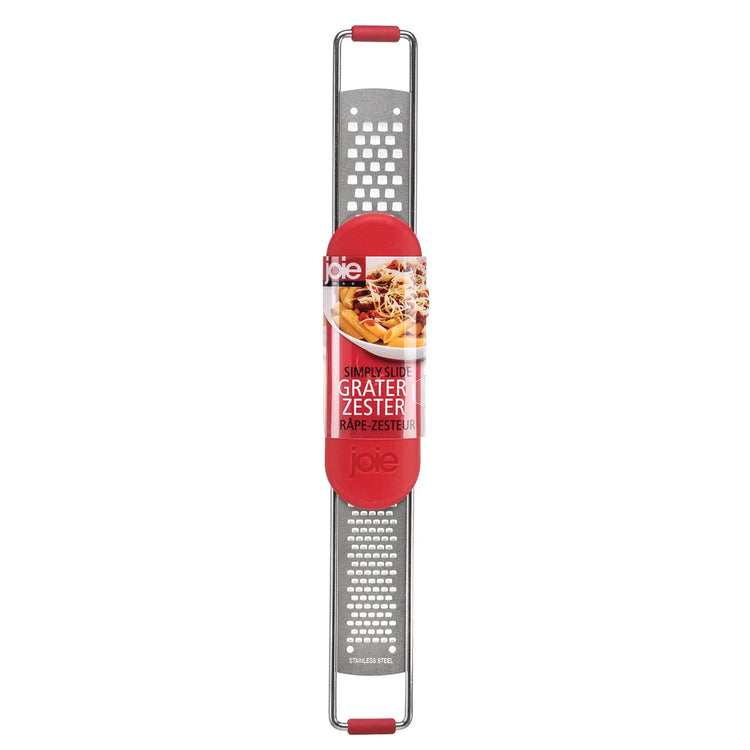 El Rallador y Zesteador 2 en 1 Joie Simply Slide une funcionalidad y practicidad en una sola herramienta. Con su mango deslizante, puedes cambiar entre dos tipos de cuchillas: una para rallar grueso y otra para zest fino, todo sin cambiar de utensilio.