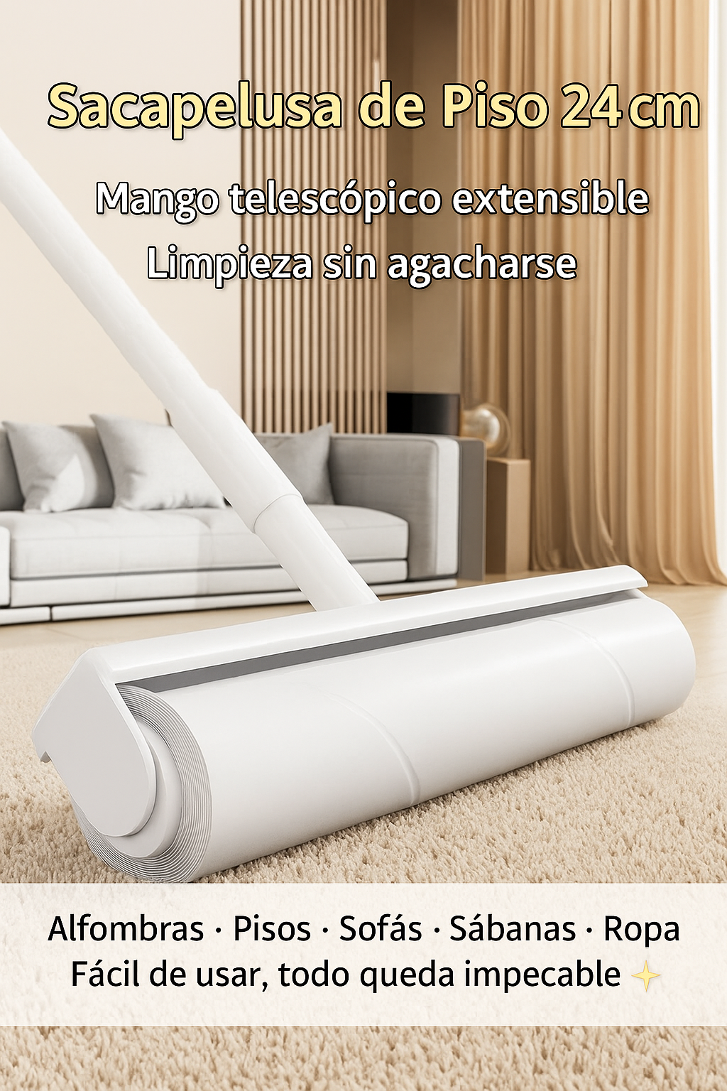 El Rodillo Quitapelusas XL con Mango Largo ha sido diseñado pensando en hogares donde la limpieza no es opcional… ¡es una prioridad!