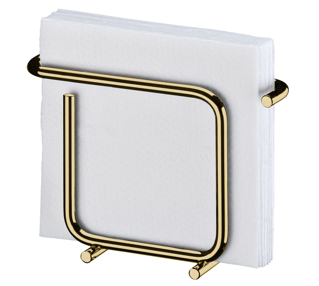 El servilletero Attuale vertical en acabado dorado es ideal para quienes buscan una presentación elegante en la mesa. Su formato único sostiene servilletas pequeñas de manera práctica y funcional. El acabado liso, junto con su recubrimiento en polvo, aseguran una excelente protección contra la corrosión y alta resistencia al impacto, garantizando durabilidad y belleza.